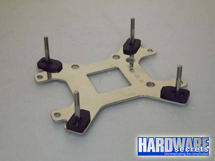 Бэкплейт помещён на обратную лицевой сторону материнской платы, а сверху на него установлена монтажная рама.