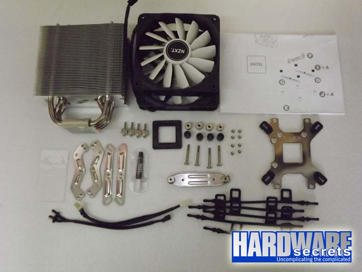 Вот что NZXT бережно упаковала в коробку с HAVIK 120: радиатор, вентиляторы, термопасту в маленьком тюбике, инструкцию пользователя, переходники питания, да инструкцию по установке кулера.