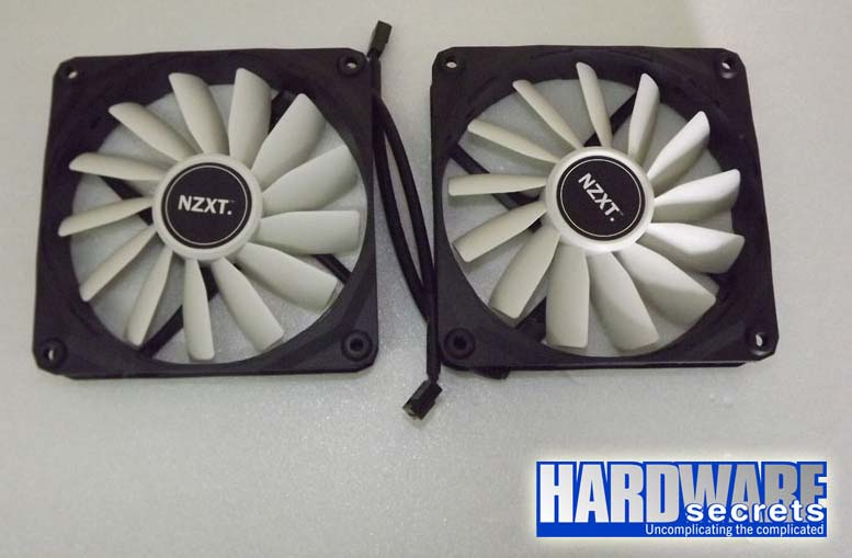 Комплектные 120мм вентиляторы, питающиеся от 3-х пинового коннектора (каждый - от своего). Скорость вращения их лопастей постоянная, что может негативно повлиять на оценку кулера, если эта скорость высока.