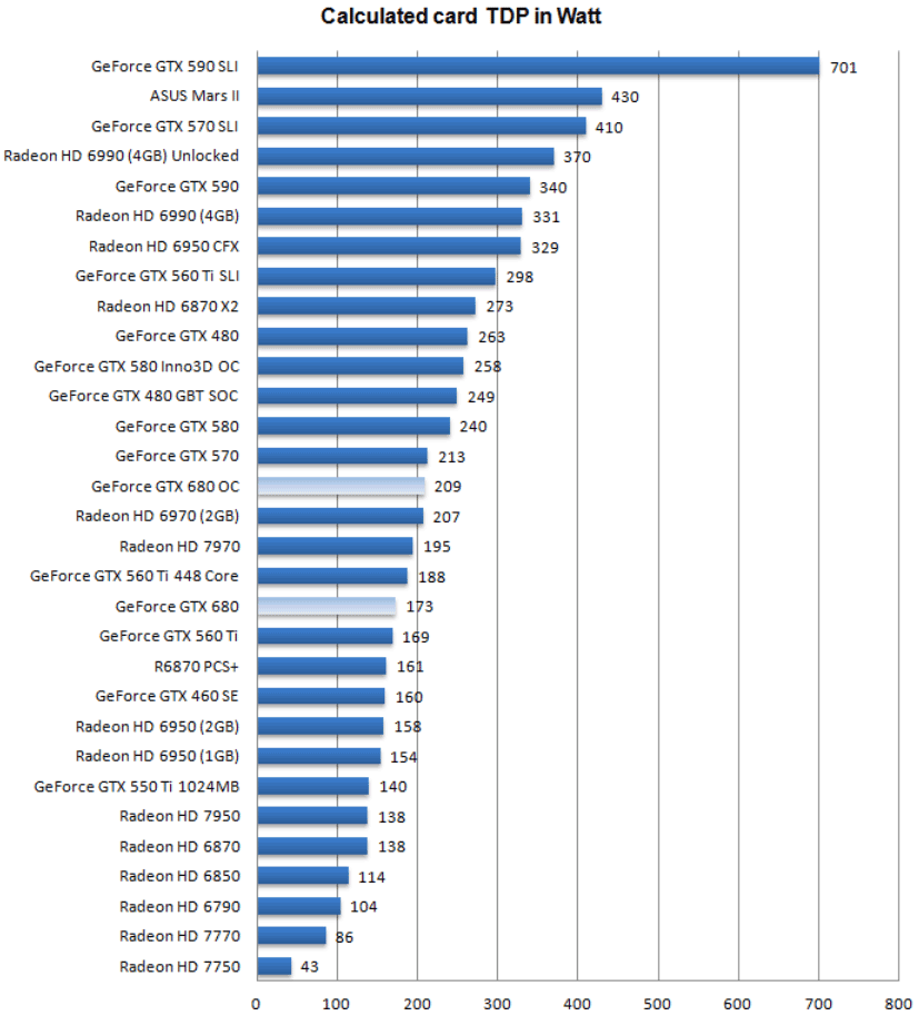 В оригинальном материале этого нет, но я на всякий случай напомню, что Гуру3Д рекомендуют обзавестись блоком питания мощностью не менее 550 ватт для одной карточки и 750 ватт - для двух GTX 680 в SLI.