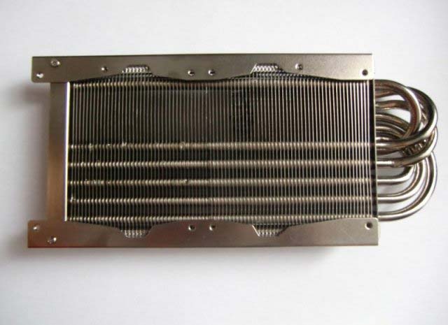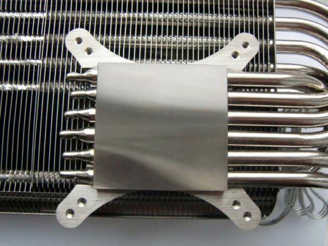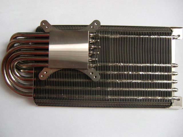 Радиатор состоит из 25 алюминиевых рёбер, нанизанных на 2 никелированные тепловые трубки диаметром 6 мм. Контакт трубок и основания осуществлен пайкой.
