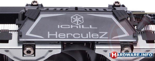 Показанный выше логотип iChill имеет белую подсветку, что порадует тех, у кого шасси с окошком на боковой стенке. Эту плексигласовую панель можно без труда заменить на что-то своё, а это польза для моддеров. На карте присутствует переключатель Turbo Boost, который заставляет вентиляторы кулера молотить по-максимуму.