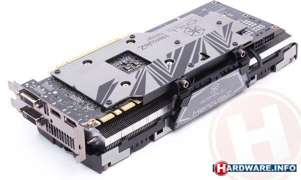 Как и у референса, у карточки от Inno3D имеется 3ГБ GDDR5 памяти, питается карта от 8+6-пиновых коннекторов БП, при этом на печатной плате есть распайка под ещё один 8-пиновый коннектор. Видеовыходы: DVI, HDMI и DisplayPort.