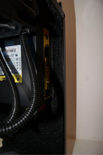 Обклеиваем заднюю стенку, где располагается блок питания и прилегающие пространства.