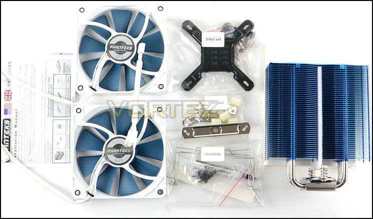 Комплект поставки кулера хорош в плане крепёжных аксессуаров, ведь изделие совместимо с процессорами Intel LGA 2011/1150/1155/1156/1366/775 и AMD FM2/FM1/AM3+/AM3/AM2+/AM2, плюс идёт вместе с парой качественных вентиляторов.