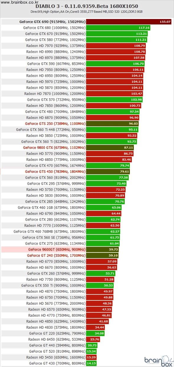 Продолжаю (начало тут и тут) публиковать цикл статей, касаемо производительности тех или иных видеокарт в Diablo III, на этот раз корейские коллеги с BrainBox представят самые подходящие, по их мнению, видеокарты семейства GeForce для Diablo III, в зависимости от разрешения, выставленного в игре.