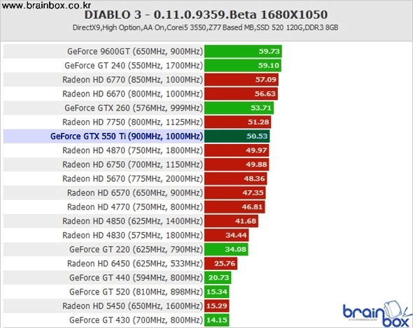 Корейские коллеги сочли нужным порекомендовать GTX 550 Ti, как основу для ~комфортной игры в Diablo III на указанном выше разрешении.