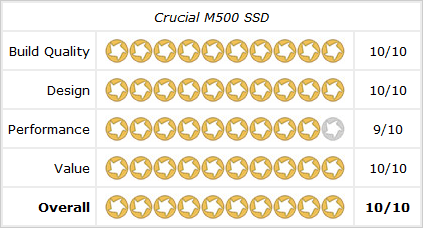 За 649 долларов США покупатель получает быстрый SSD ёмкостью 960ГБ, ещё год назад это было просто немыслимо! Да и сейчас, видя цены на продукты конкурентов (которые просят примерно столько же денег, но за 512ГБ модели), изумлению установленной на M500 стоимости нет предела. Так держать, Crucial!