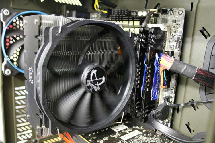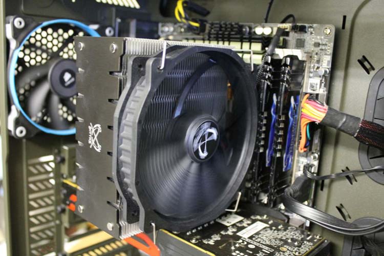 Далее нам показывают четыре фотографии полностью установленного на тестовый ПК кулера Scythe Ashura: