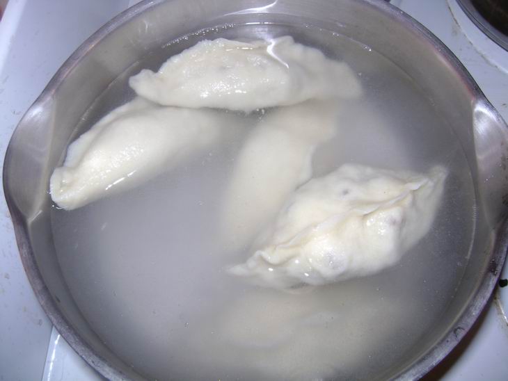 8. Теперь, получившиеся полуфабрикаты картофельно-мясных штук, необходимо довести до ума, а значит - сварить. Это уж проще простого: наливаем в кастрюлю водицы (её можно подсолить), доводим её до кипения и опускаем туда «колдуны». Пусть они покипят, поварятся минуток так около 10.