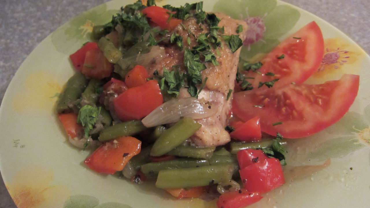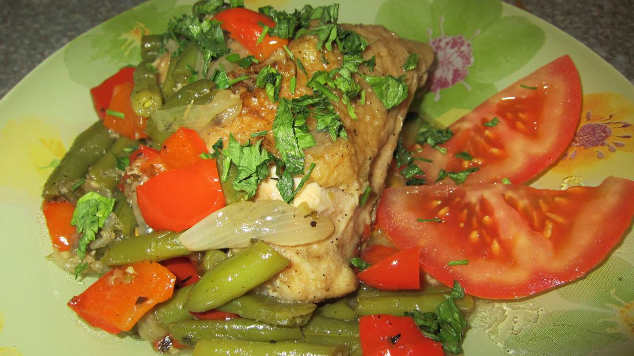 Здравствуйте! Это блюдо достаточно просто и быстро готовится, к тому же ингредиенты можно варьировать по желанию, например - фасоль и перец заменить на капусту и помидор. Всё зависит от Вашего вкуса и наличия тех или иных продуктов на момент приготовления.