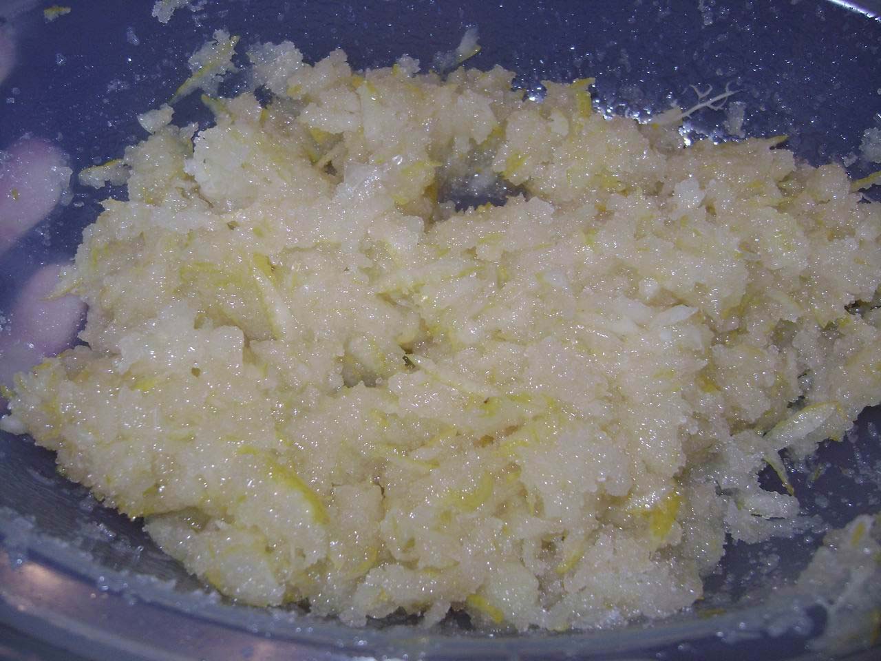 3. К натертому лимону добавить стакан сахара и перемешать - это будет начинка для пирога.