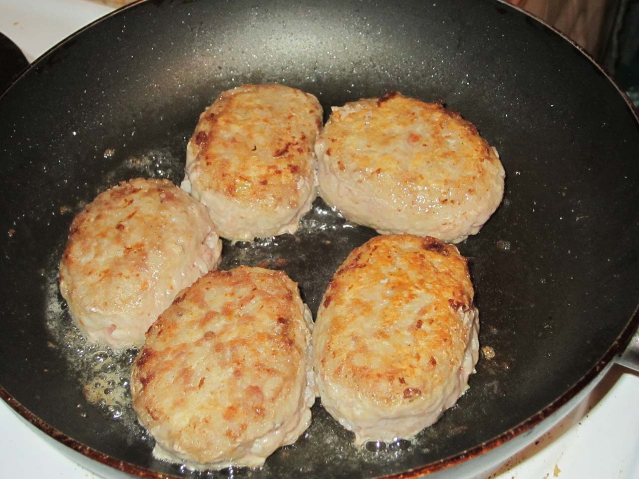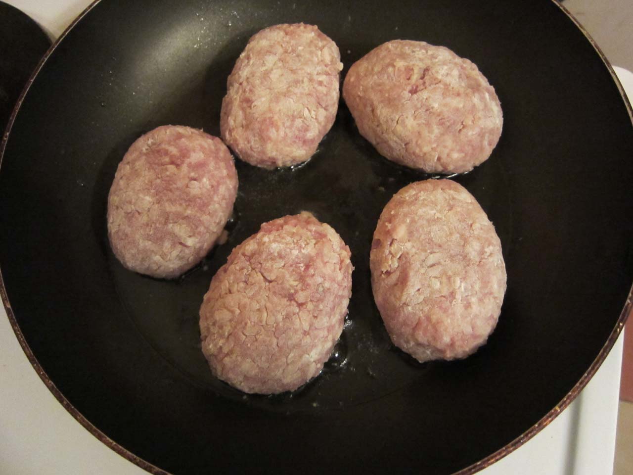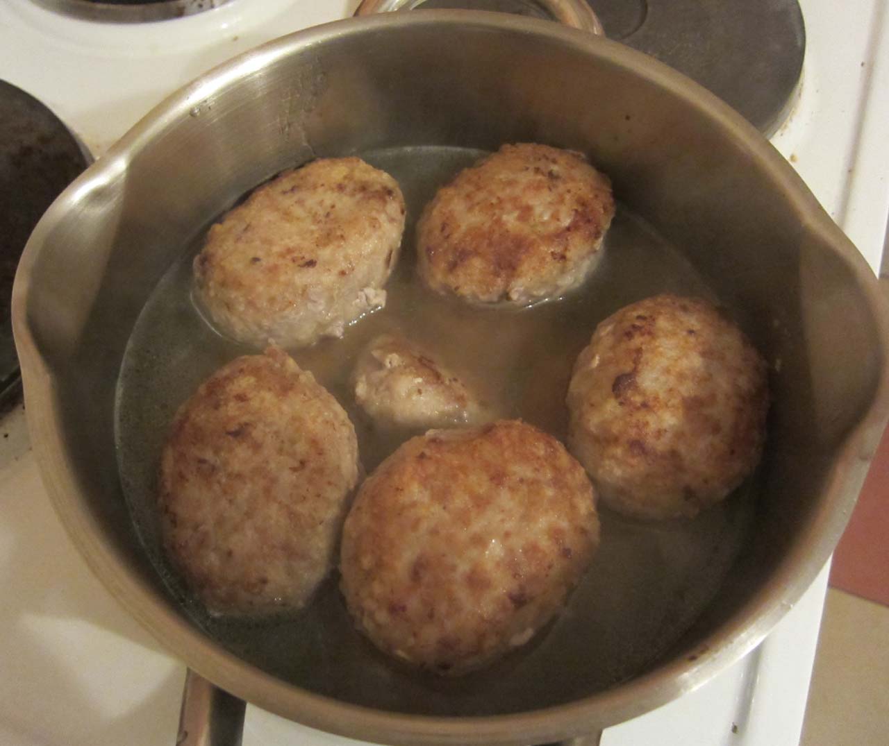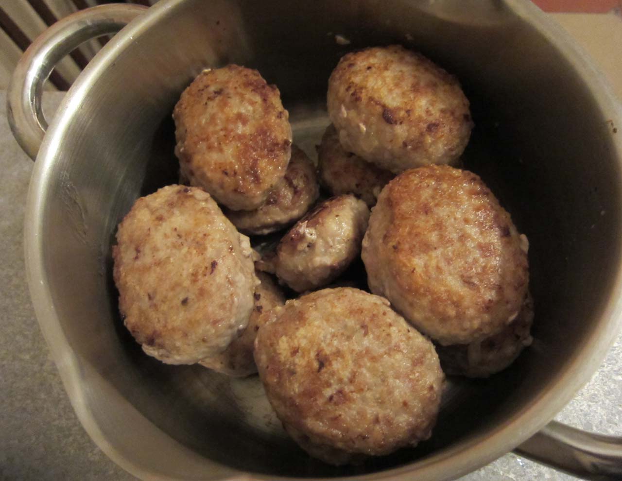 2. Поставила разогреваться сковородку, дно которой покрывало растительное масло. Из фарша лепила тефтельки, обваливала их в муке, выкладывала на сковороду и обжаривала до румяной корочки с двух сторон.