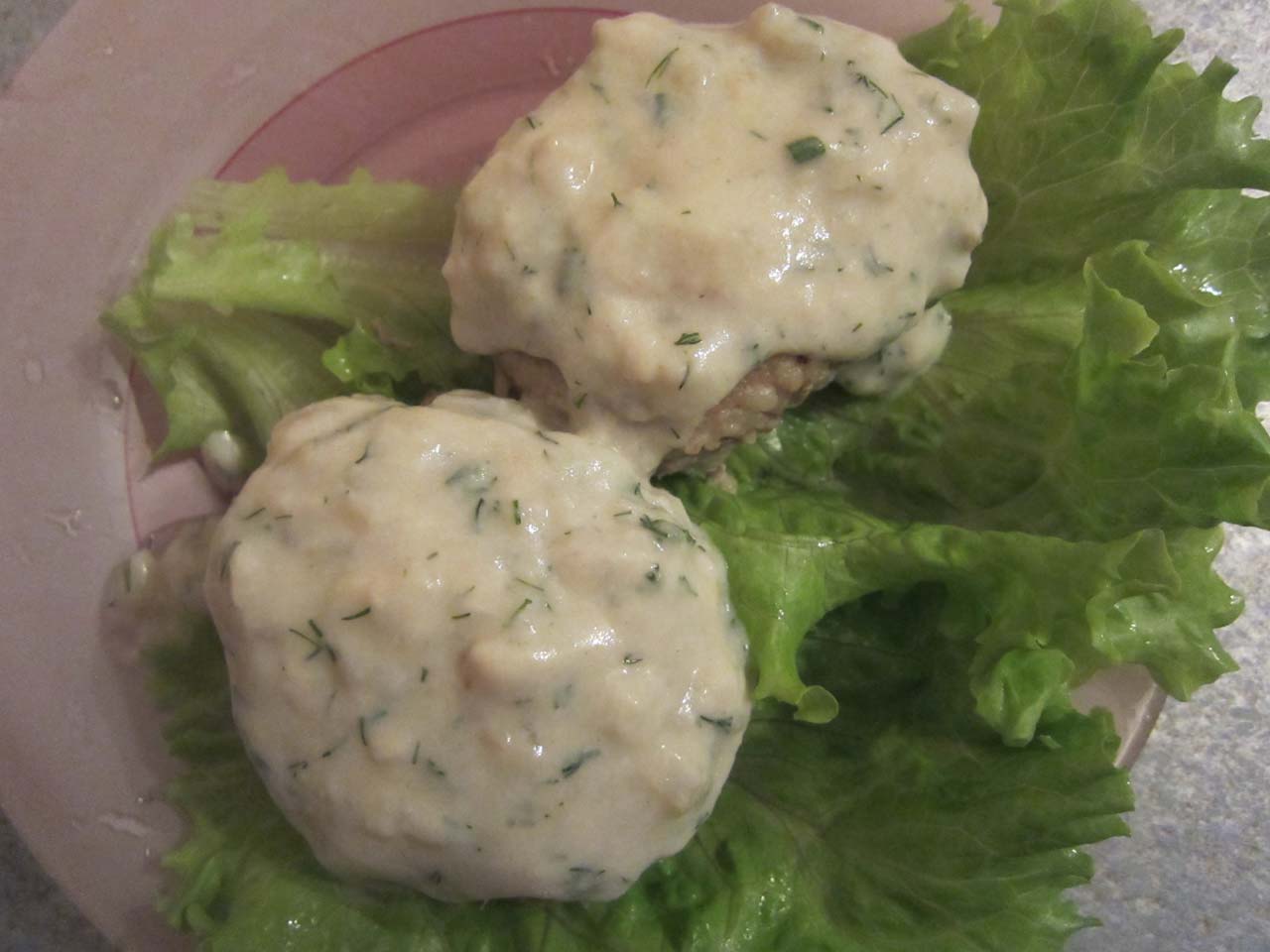 Готовые тефтели выложила на тарелку и полила молочным соусом - ужин, почти, готов. Почти - это потому что без гарнира :)