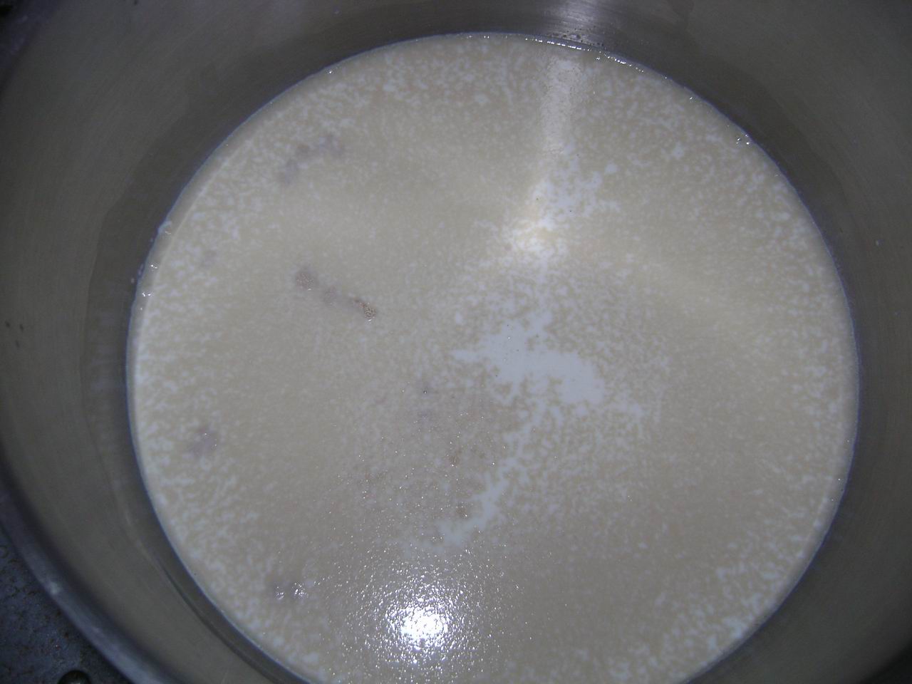 2.Молоко слегка подогреть, добавить сахар, соль и растворённые дрожжи.