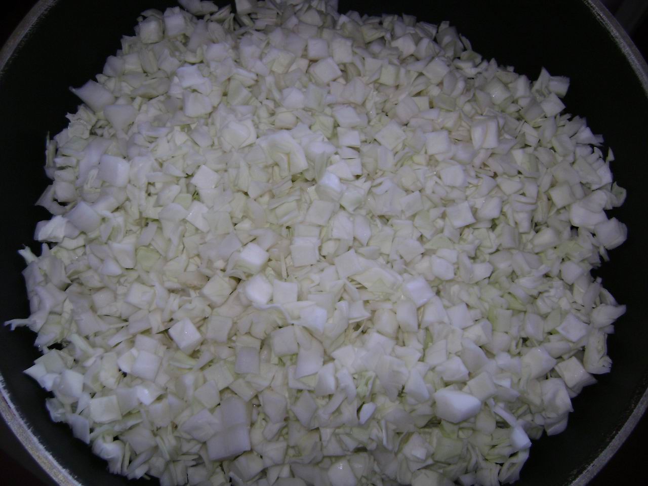 1.Капусту мелко порезать и обжарить на растительном масле (чтобы была мягкой)