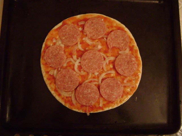 Сегодня у нас особое блюдо, столь дорогое сердцам миллионов гурманов по всему миру. Дамы и господа, встречаем - пицца с колбасой !
