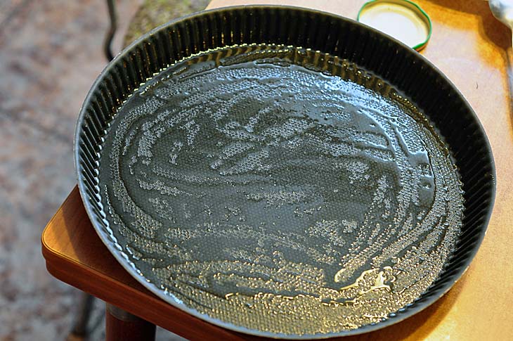 Смазываем противень растительным маслом, но при этом стараемся сделать слой масла как можно тоньше, только для того, чтобы пицца не прилипла и не подгорела. Ну, если заботитесь о жирности пищи, конечно.
