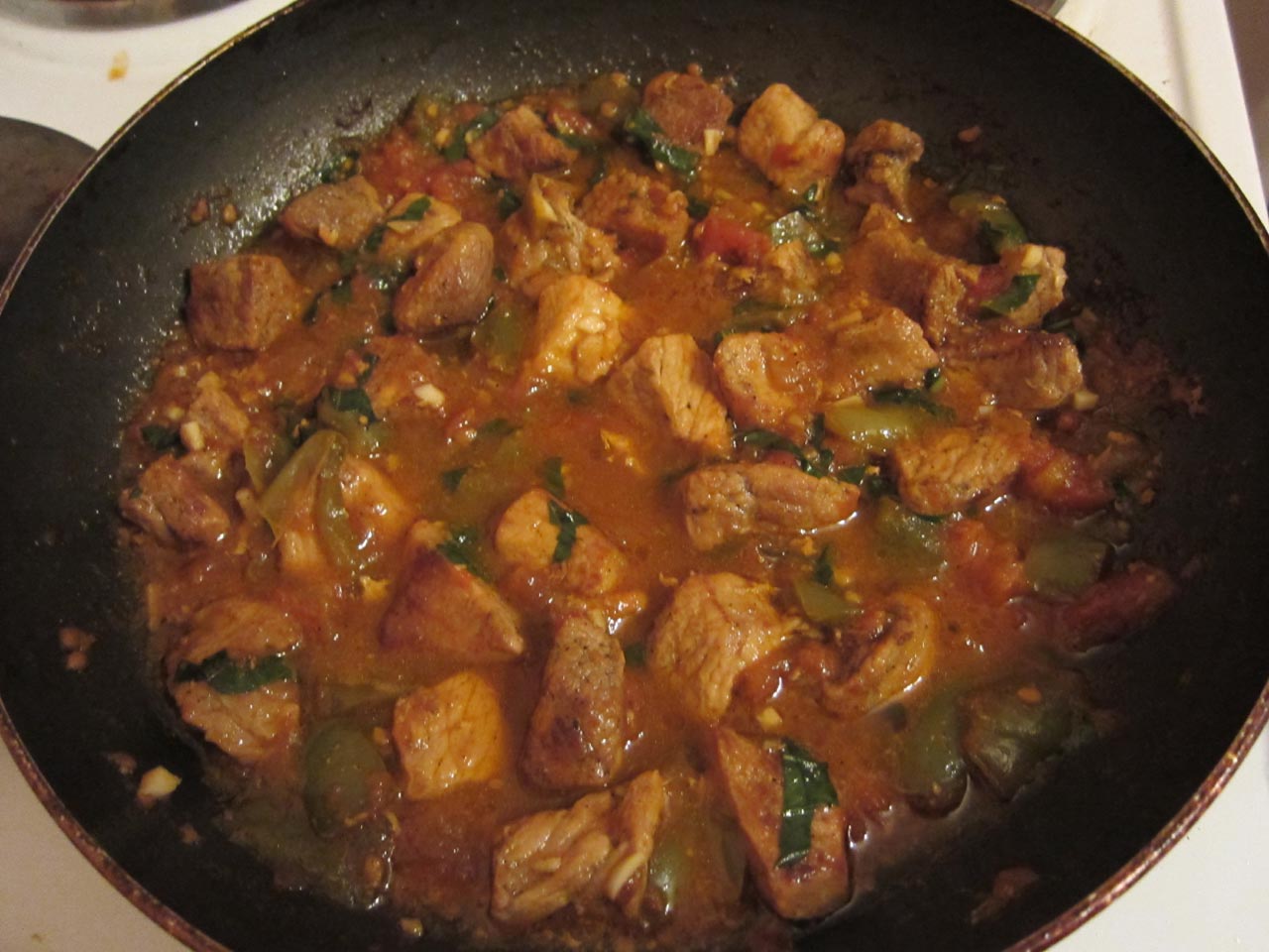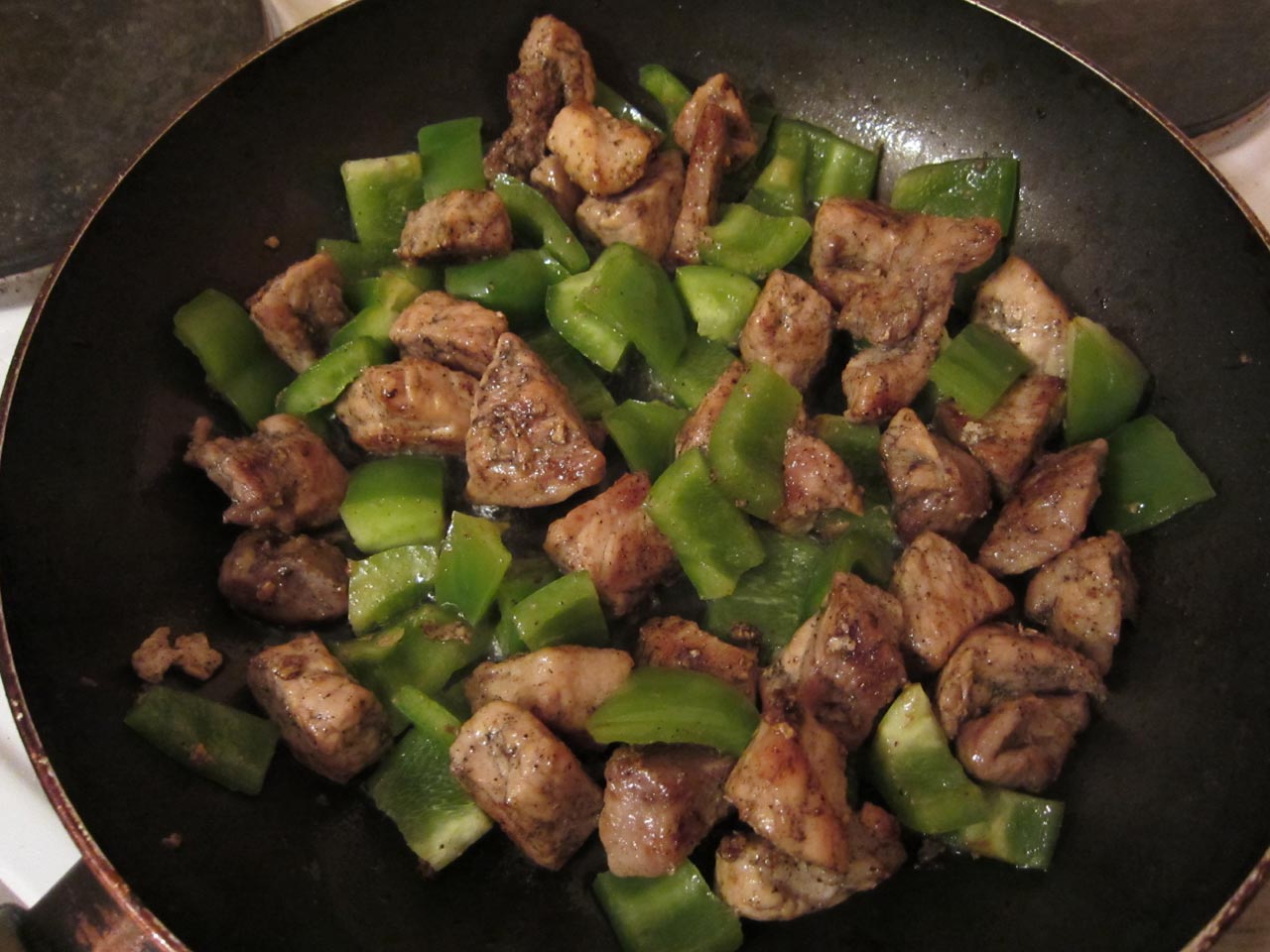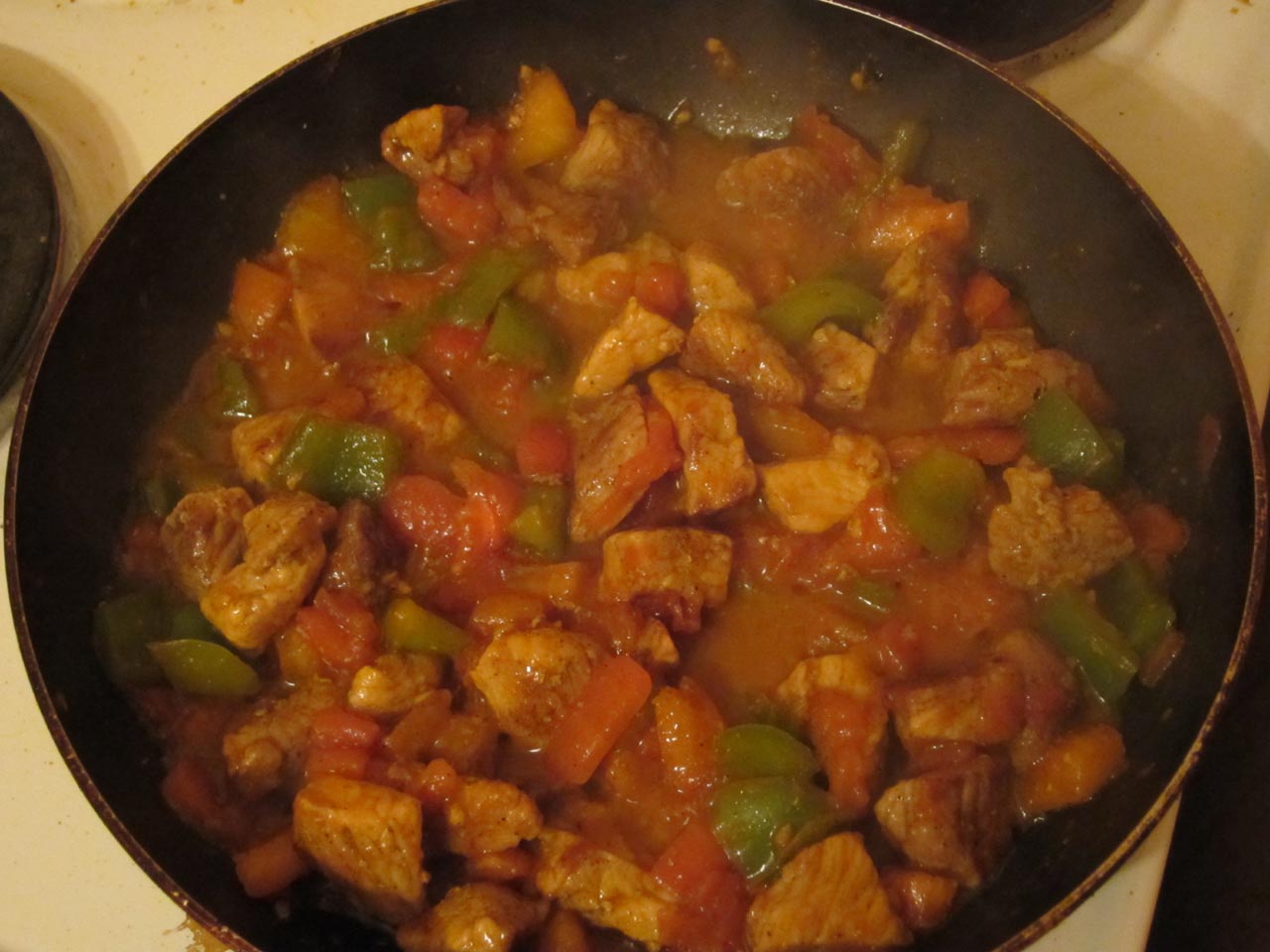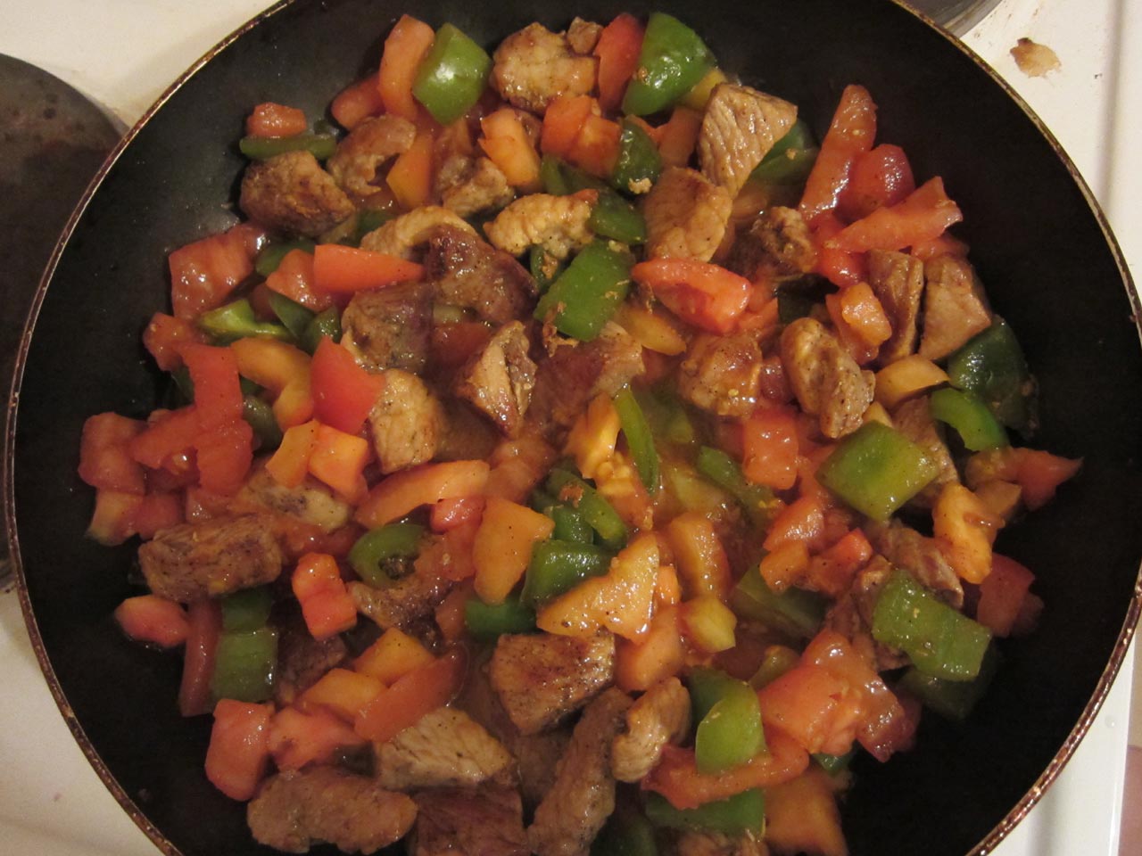 ) кипятком, снять кожицу, порезать мелкими кубиками, а после - выложить на сковороду к мясу и перцу. Помидоры с мясом и перцем обжарить на сильном огне (около 5 минут), при этом не забывать помешивать, после чего нужно огонь убавить, накрыть крышкой и тушить это дело минут ~40. Если в процессе готовки станет мало жидкости, то подлейте немного воды (лучше кипяточка).