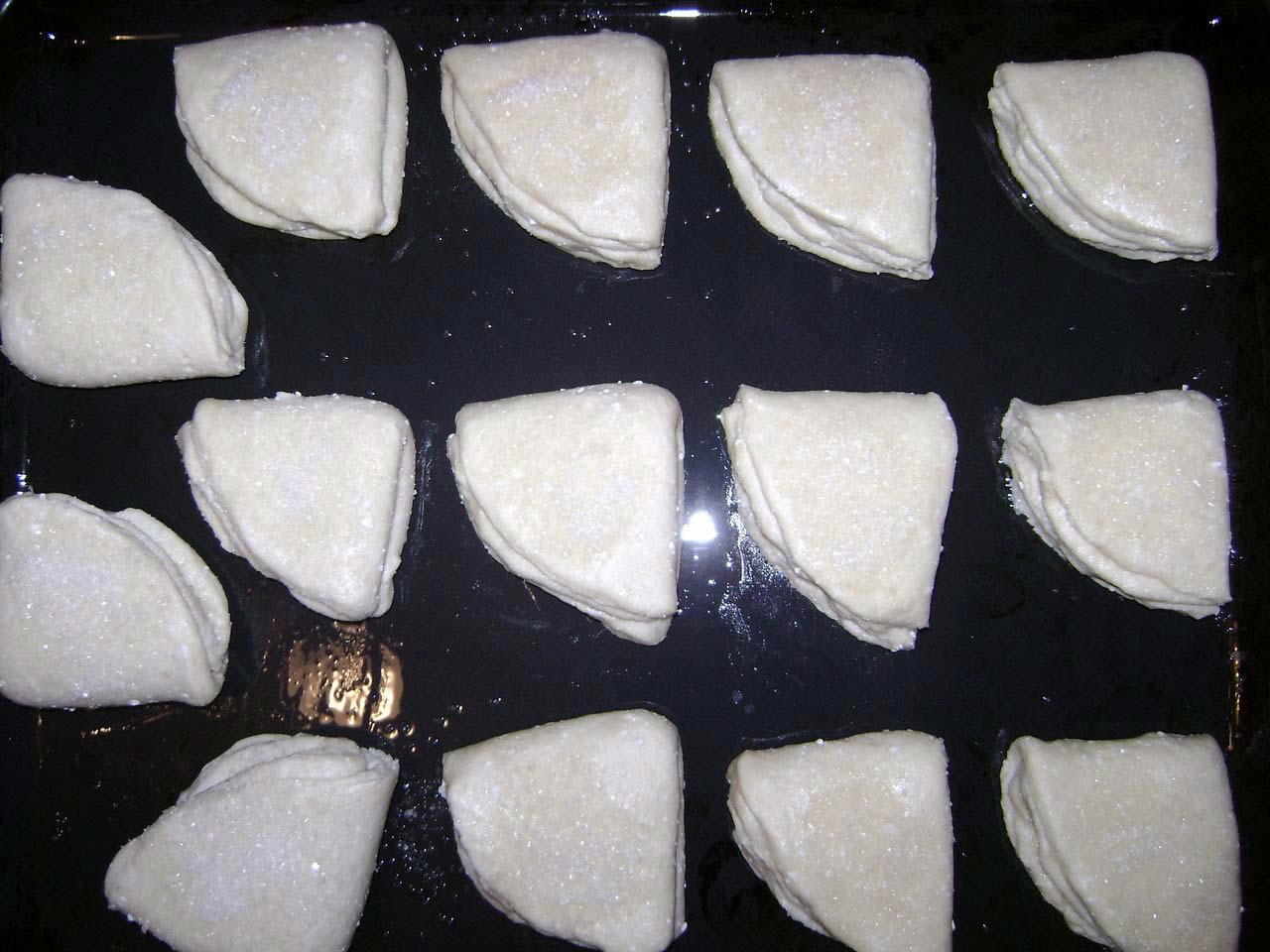7.Выкладываем наши сахарные треугольнички на противень и запекаем в духовке в течении 25-30 минут.